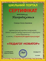 Сертифікат Алли Скамкун за публікацію на платформі "Шкільний портал"
