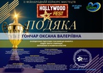 ІІ Міжнародний конкурс мистецтв " Holliwood fest" подяка Оксані Гончар.
