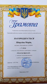 Вітаємо юну художницю Марію Ширліну з І місцем у міському етапі обласного конкурсу "Космічні фантазії"!