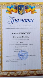 Вітаємо юну художницю Поліну Крупенко з І місцем у міському етапі обласного конкурсу "Космічні фантазії"!
